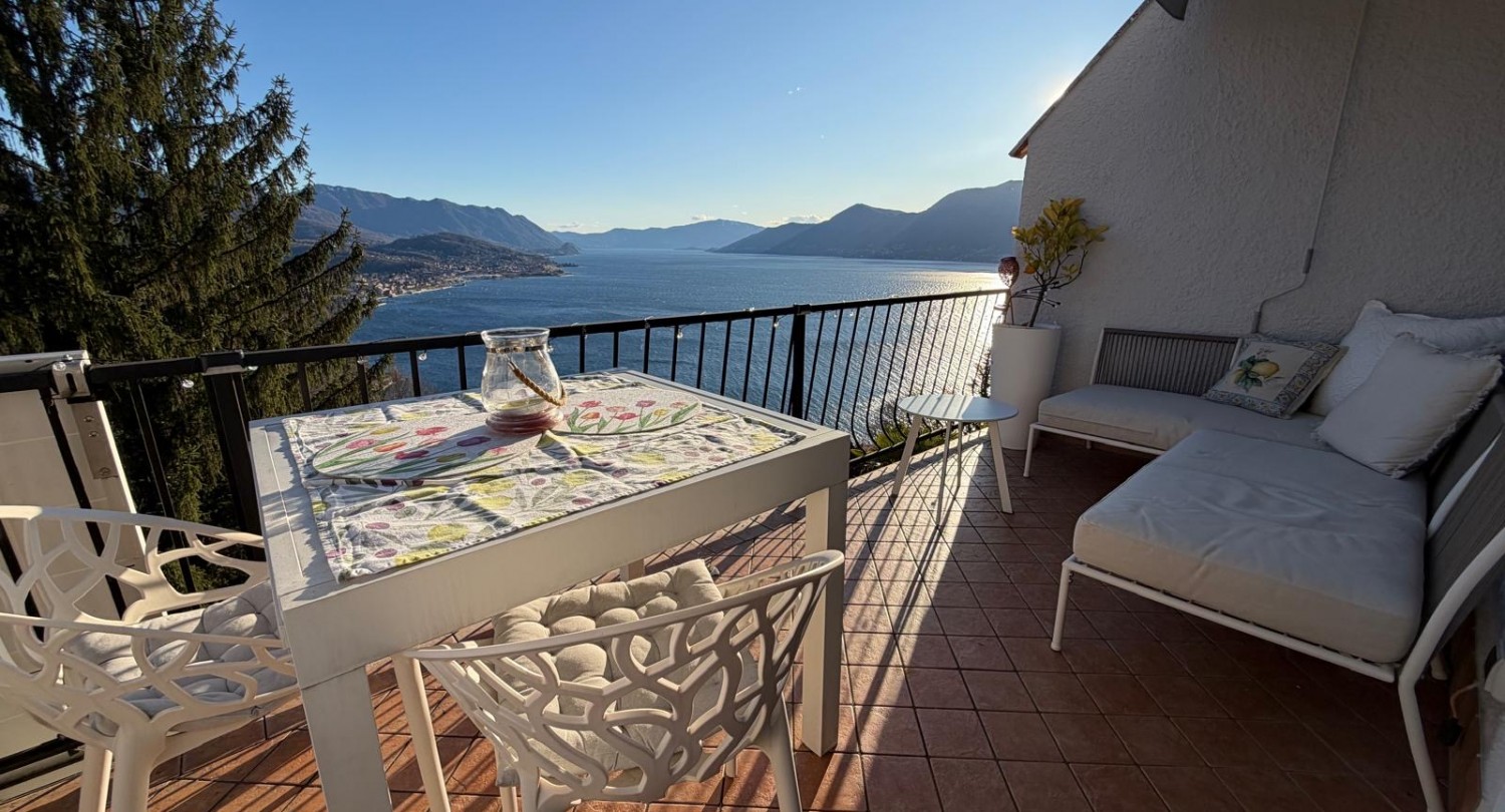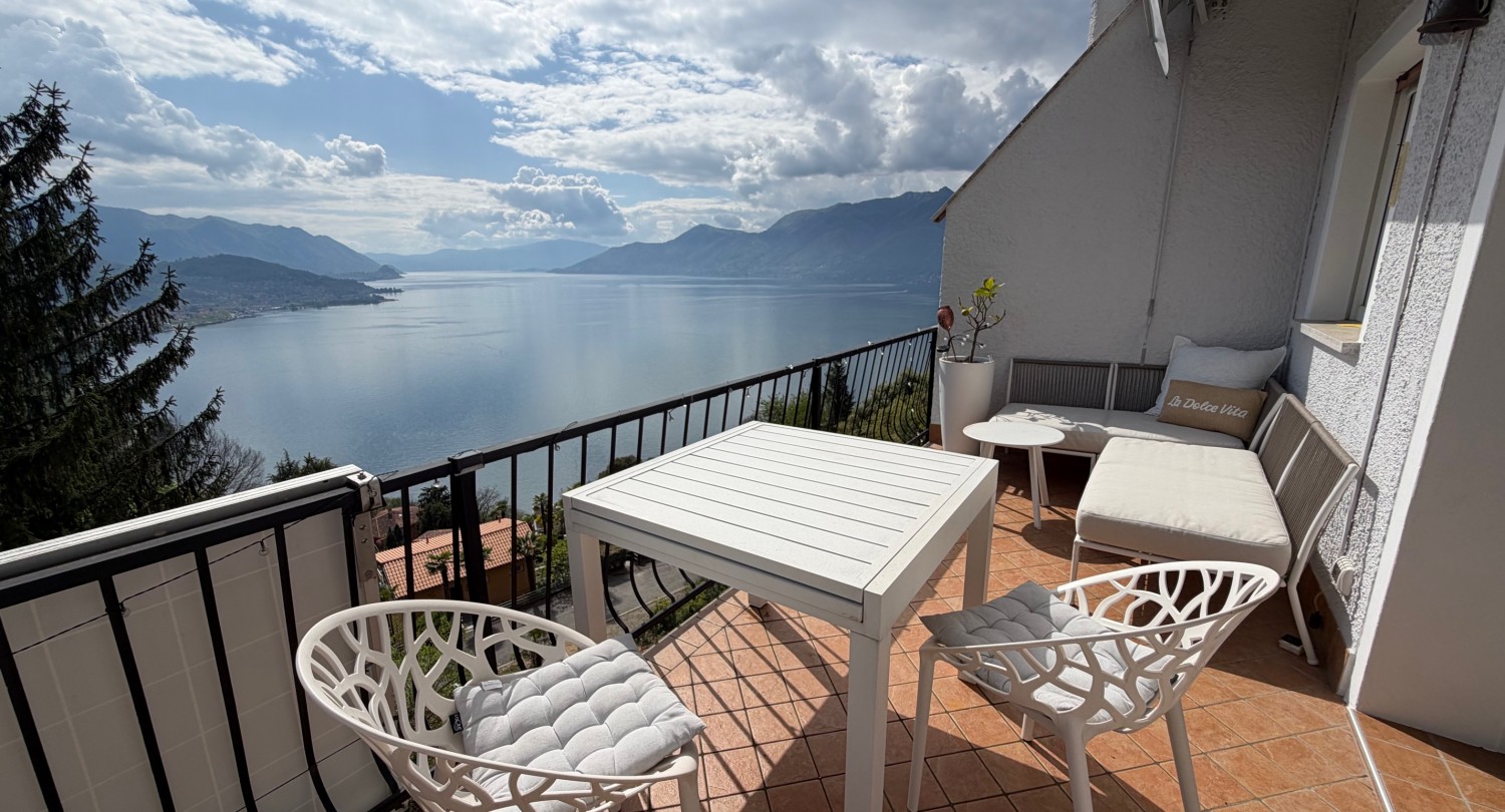 Bilocale d'angolo ristrutturato con bel terrazzo e vista lago da sogno, in posizione soleggiata - basse spese condominiali!
