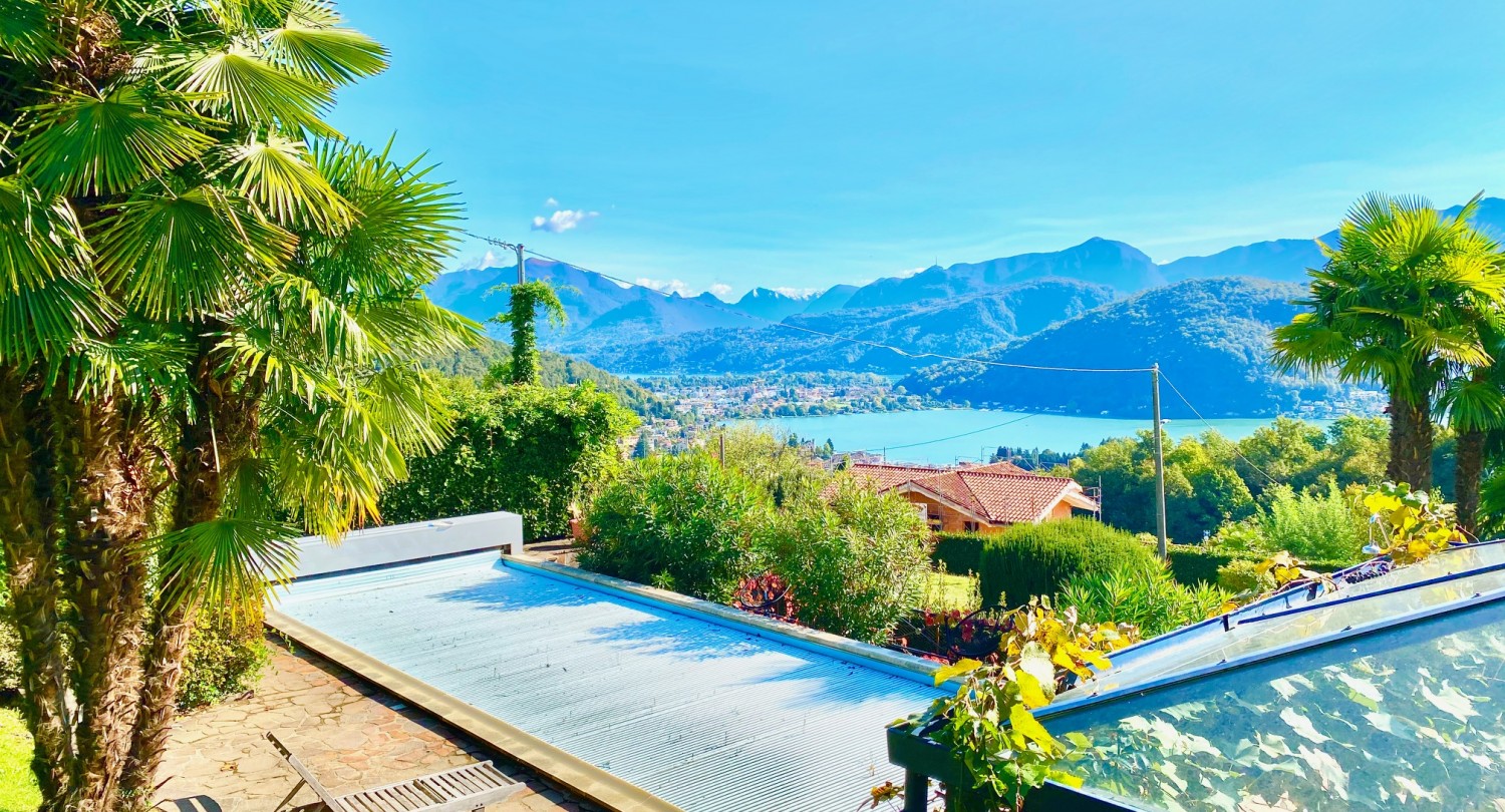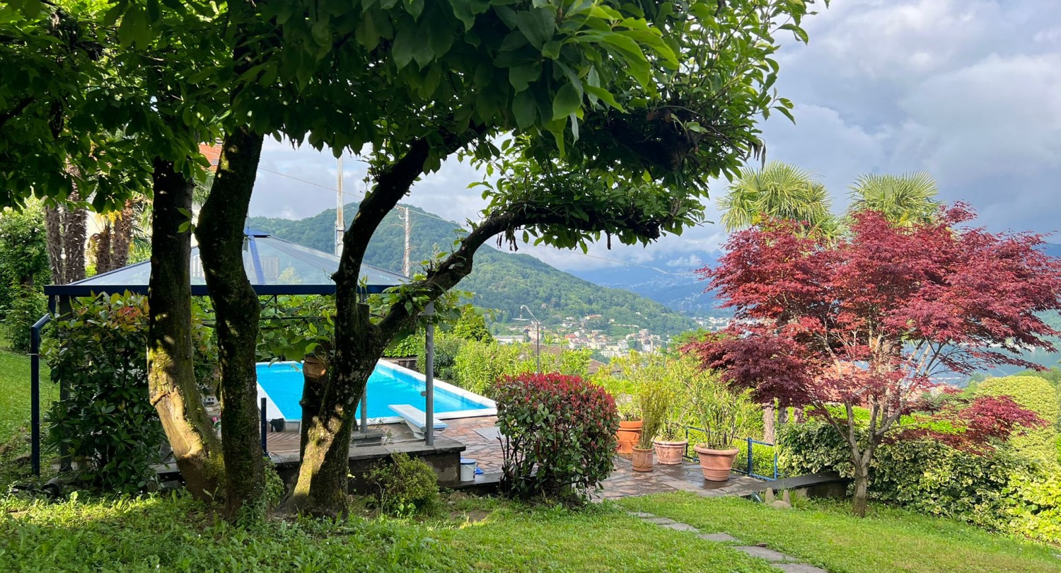 Villa a Cadegliano Viconago. Questa stupenda villa con piscina privata e splendida vista panoramica sul Lago di Lugano e sulle montagne circostanti, è sita a Viconago, a pochi minuti dal confine svizzero. La villa superficie totale di circa 170 mq è così composta: piano superiore: ampio e luminoso soggiorno / sala da pranzo con camino, cucina, 2 camere da letto, bagno, 3 terrazze coperte e un balcone. Piano terra: due ampie camere per ospiti, ripostiglio, bagno, servizio, locale tecnico e garage. Il bellissimo giardino di circa 1.300 mq e la piscina (12m x 4 m) completano l'offerta.