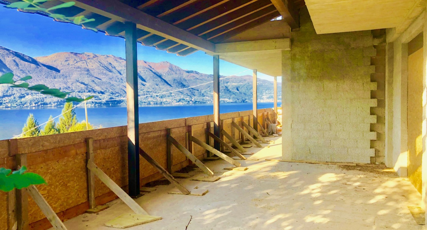 Ampia villa da ultimare in una posizione tranquilla e soleggiata con stupenda vista lago a 180 gradi