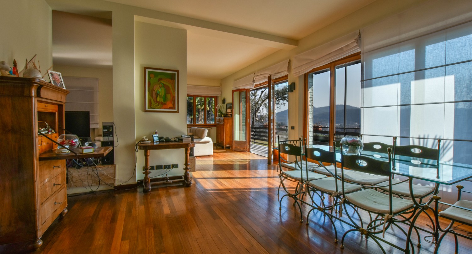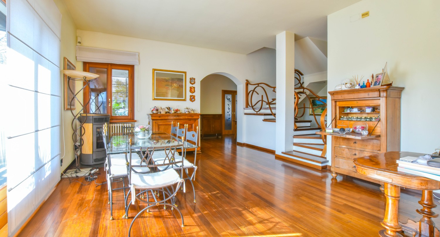 Villa a Laveno Mombello. Questa villa indipendente, con vista panoramica sul Lago Maggiore, si trova sulla soleggiata collina di Laveno-Mombello.La villa si estende su una superficie di circa 360 metri quadri ed è circondata da un magnifico parco di 1.900 metri quadrati. La residenza si sviluppa su due livelli fuori terra, un piano mansardato ed un piano seminterrato, così suddivisi: Piano terra: soggiorno con camino e stufa a pellet, una sala da pranzo, cucina abitabile, bagno di servizio con doccia e ripostiglio con lavanderia. Primo piano: due suite, entrambe con accesso a una terrazza panoramica, un guardaroba e un bagno. Piano mansardato: camera da letto e ripostiglio sottotetto.Piano seminterrato: studio, taverna attualmente adibita a sala biliardo e bagno con doccia. La proprietà include inoltre una cantina e un ampio garage con spazio per due auto.