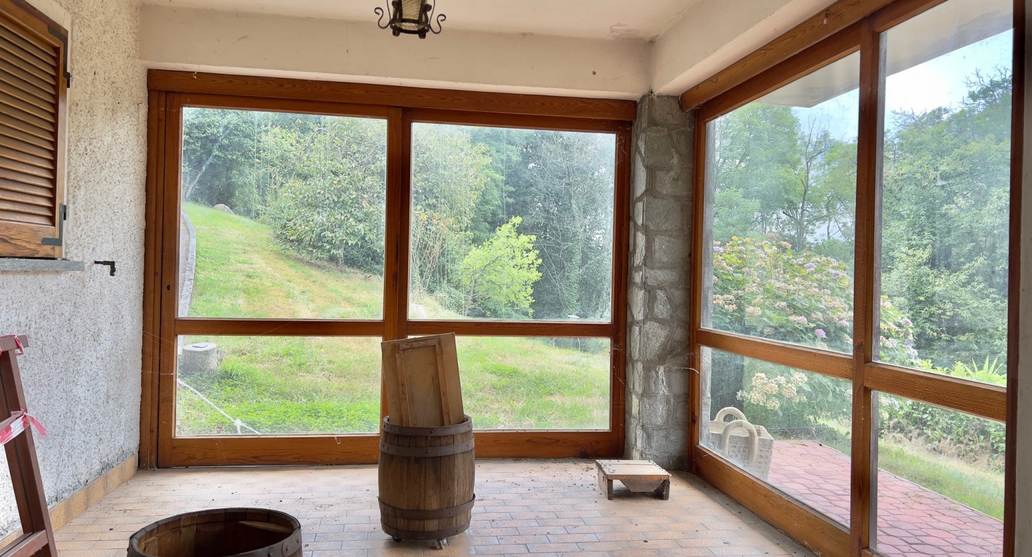 Villa in Agra. Diese schöne Villa befindet sich in ruhiger und sonniger Lage nur wenige Schritte vom Zentrum von Agra entfernt. Einkaufsmöglichkeiten, Postamt, Bushaltestelle etc. sind problemlos zu Fuß erreichbar. Die Villa bietet eine Wohnnutzfläche von ca. 210 qm und ist wie folgt aufgeteilt: EG: Eingangsbereich, großes und helles Wohn-/Esszimmer mit offenem Kamin, Küche, 2 Schlafzimmer, ein Badezimmer, eine große überdachte Terrasse und einen Balkon OG: ein Schlafzimmer mit Bad en-suite Souterrain: 1 Schlafzimmer, Taverne, Waschküche, WC, Heizkeller, Veranda und eine Garage. Auf dem Grundstück befindet sich ein kleines ausbaufähiges Rustico mit ca. 62 qm. Das schöne Grundstück hat eine Größe von ca. 6.770 qm.