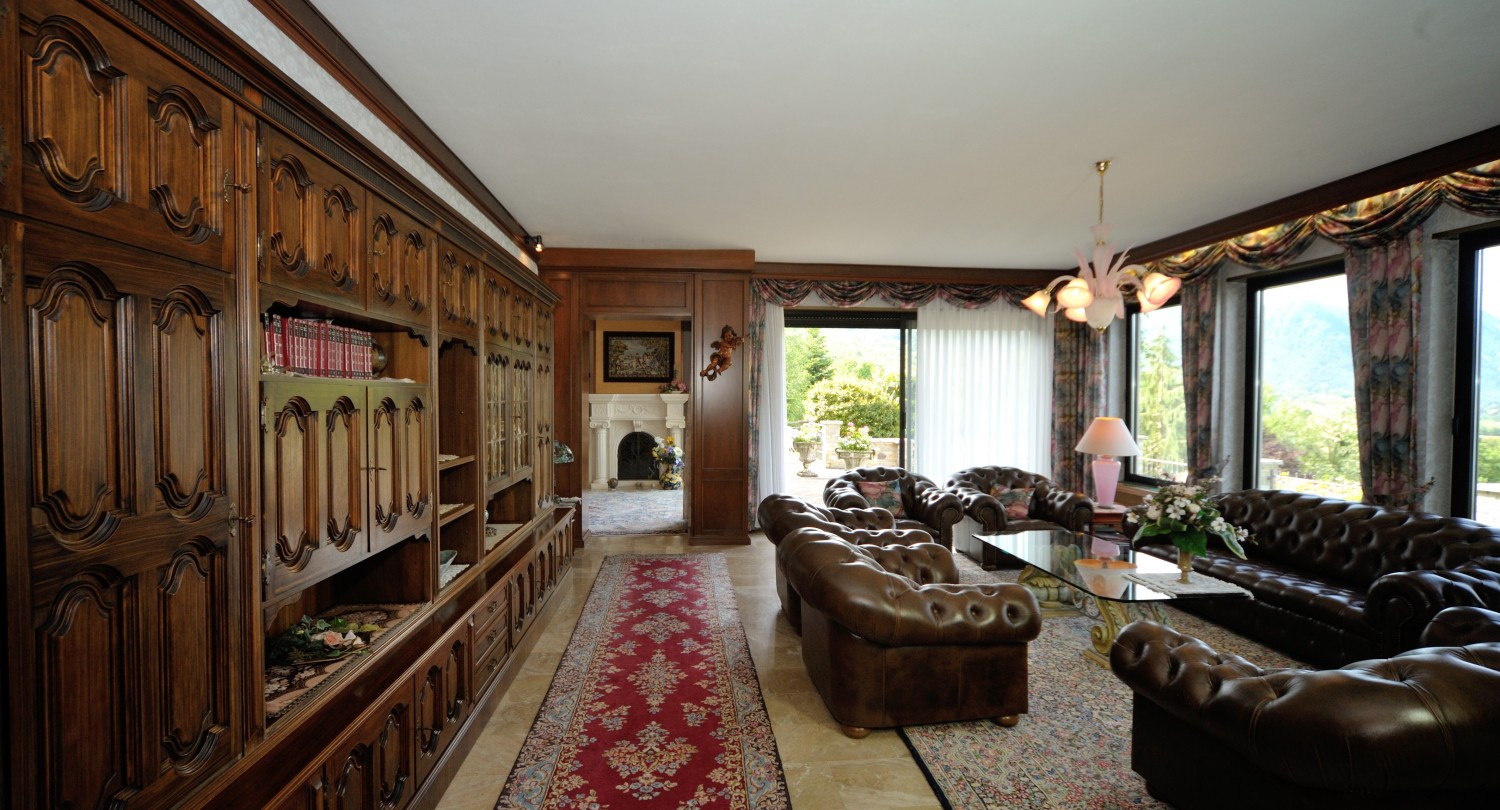 Diese topgepflegte Luxus-Villa befindet sich in der Gemeinde von Brezzo di Bedero, ca. 4 km südlich von Luino in sonniger und ruhiger Lage (in einer Sackgasse). Der See und der Strand sind in ca. 10 Minuten zu Fuß zu erreichen. Die Gesamtwohnnutzfläche von ca. 748 qm teilt sich wie folgt auf: EG: Eingangsbereich, großer Wohnbereich mit Speisesaal, Wohnzimmer, Kaminzimmer, Wohnküche, Bar, Arbeitszimmer und Gäste-WC. OG: offene Galerie, 2 große Schlafzimmer, 2 Kinderzimmer und 3 Bäder. Zwischengeschoss: Wintergarten mit Indoor-Pool, Arbeitszimmer, Dusche und WC. Souterrain: Garage für 5 Autos, Weinkeller, Hobbyraum, Abstellraum, Waschküche, Heizungsraum und ein Badezimmer. Das schöne Grundstück hat eine Größe von ca. 8.930 qm.Einzelheiten