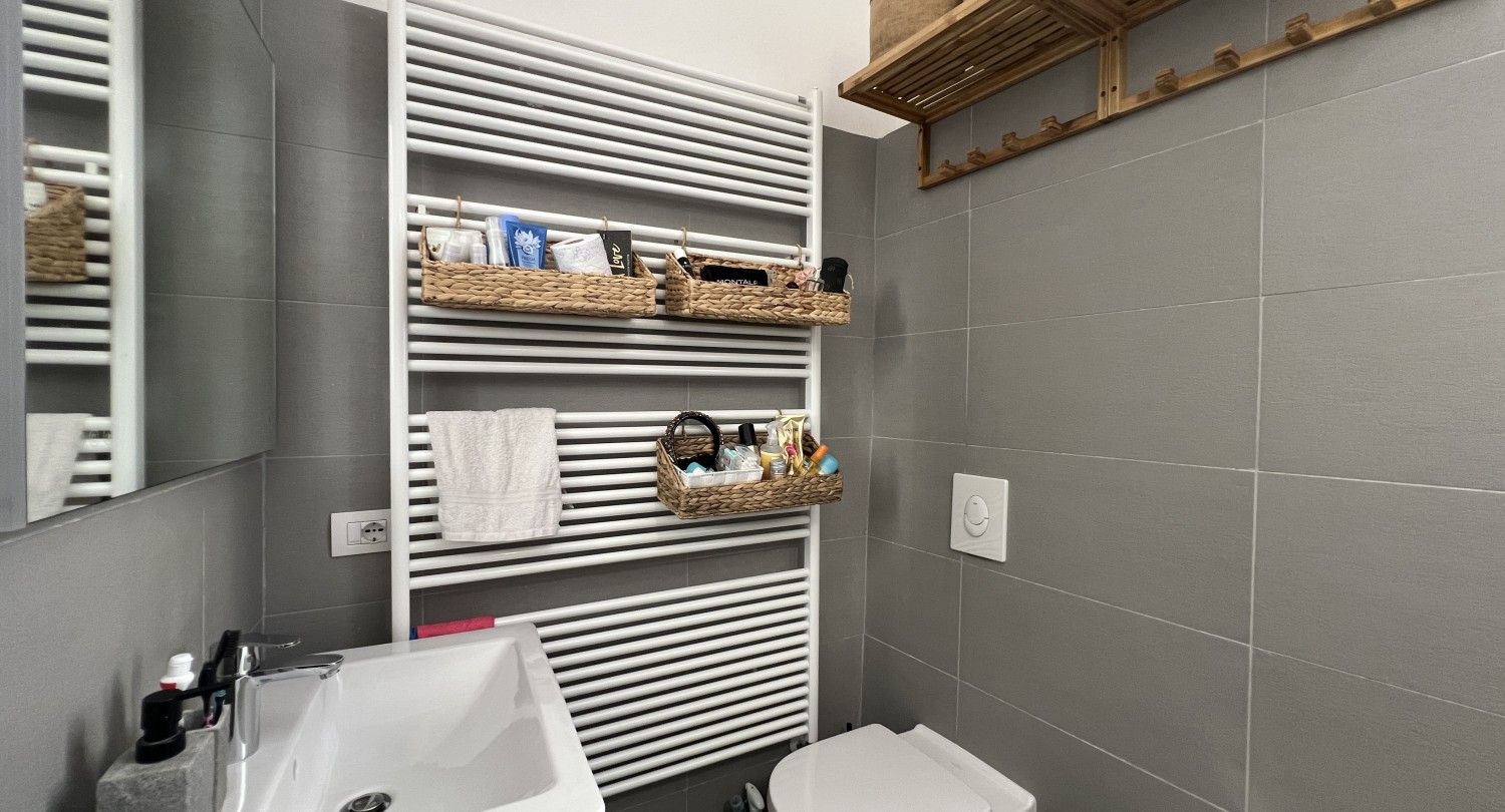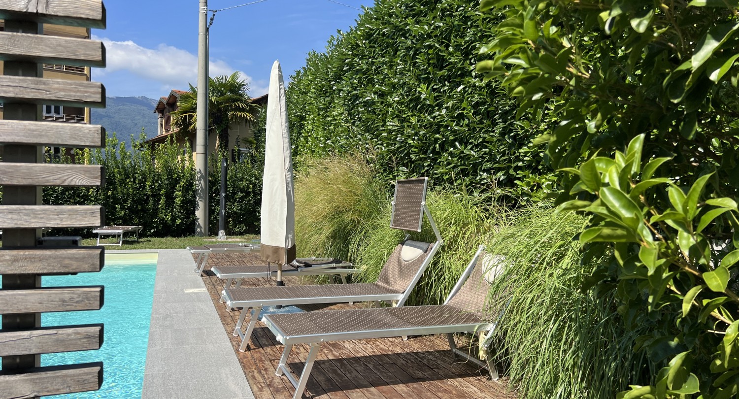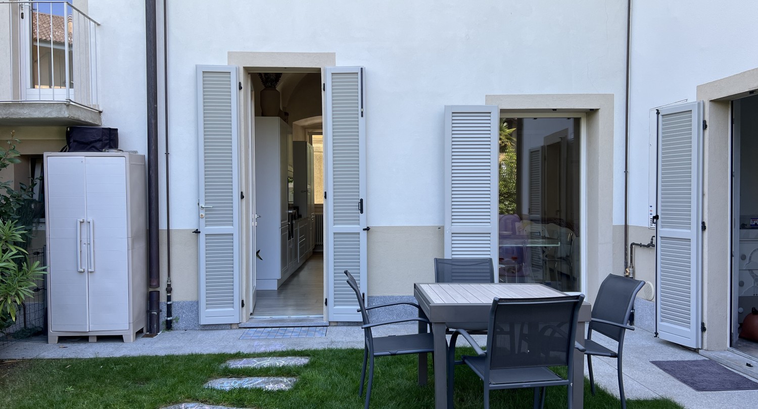 This beautiful luxury garden apartment with terrace is located in the centre of Porto Valtravaglia, approx. 4 km south of Luino, in a historic palazzo with only 9 residential units. The beach and restaurants are just a short walk away, and all essential services are easily accessible on foot. The apartment offers a total living area of approx. 152 sqm and is laid out as follows: a spacious and bright living/dining area with vaulted ceilings and direct access to the garden, an open and modern designer kitchen, two bedrooms each with en-suite bathrooms, as well as a storage/laundry room. A large communal pool, several shared terraces, a private parking space and a cellar complete this exceptional offer.