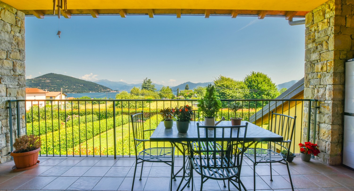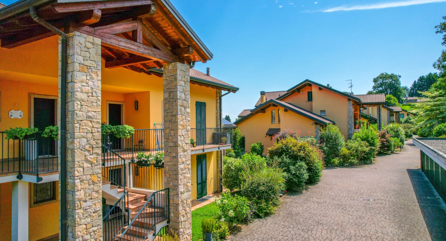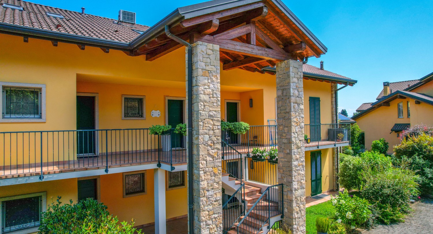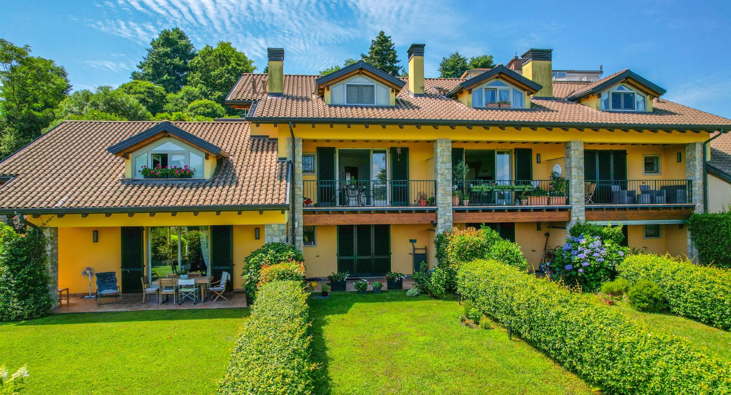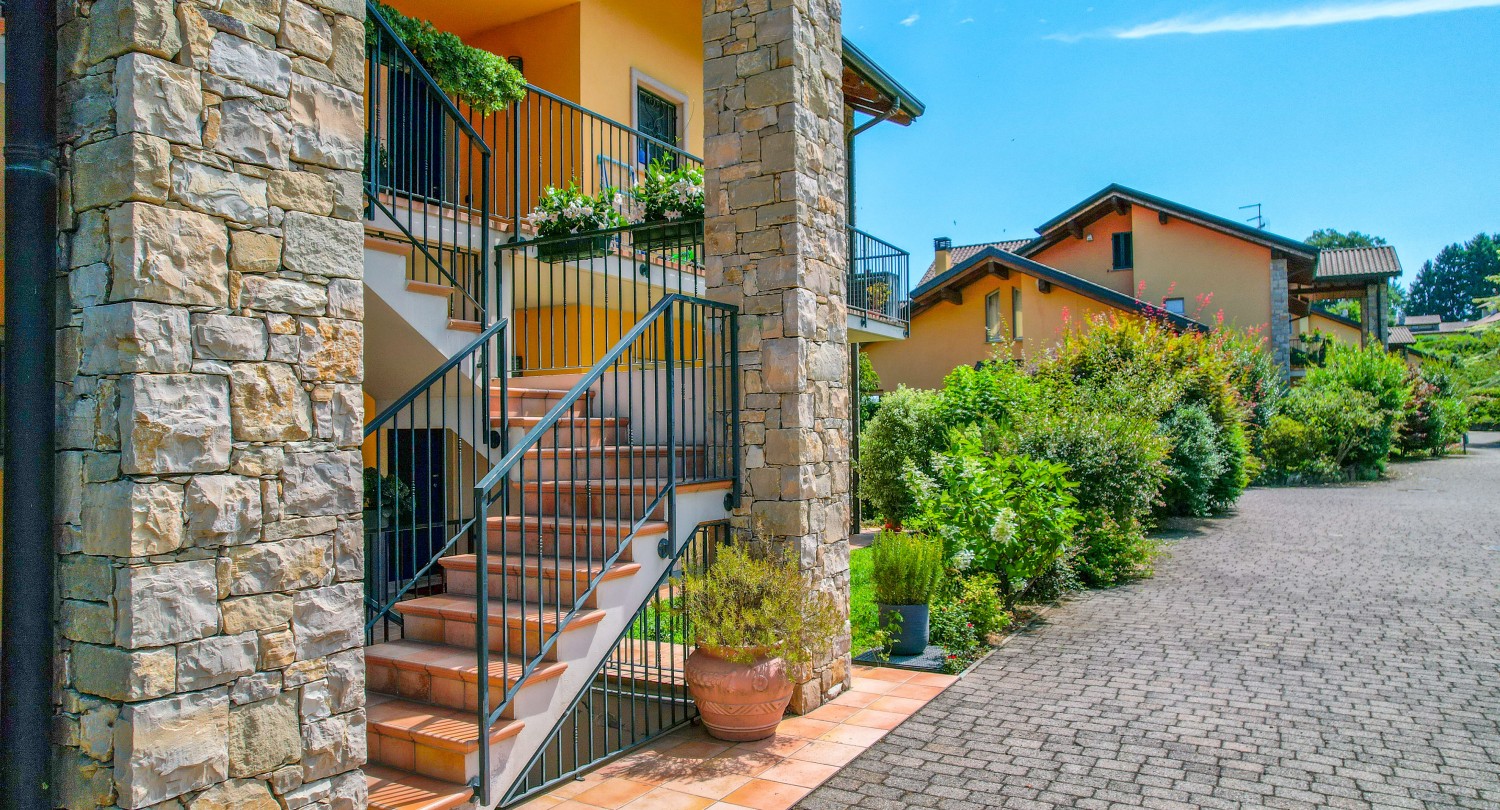 Appartamento su due piani in residence moderno, con vista sul Lago Maggiore e piscina condominiale
