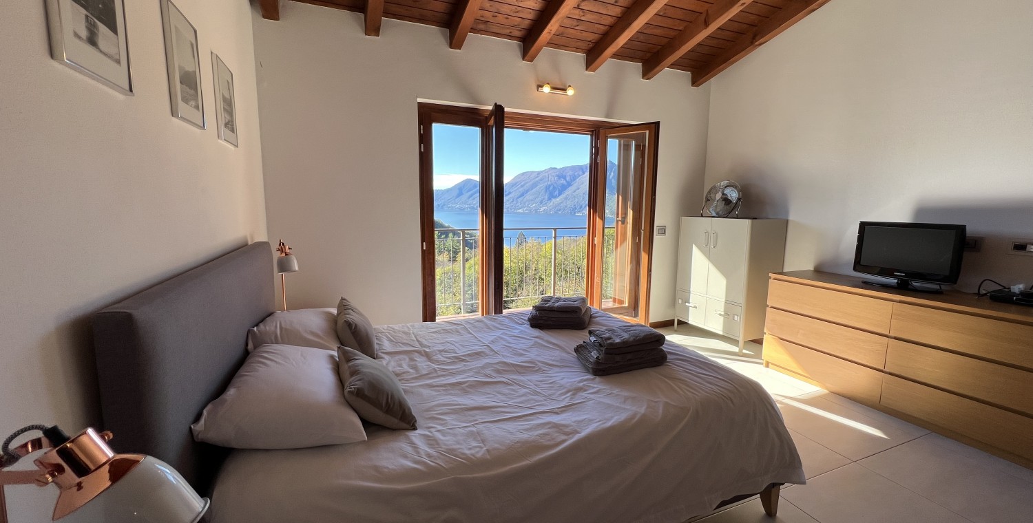 Curata porzione di casa bifamiliare in una posizione tranquilla e molto soleggiata con fantastica vista lago