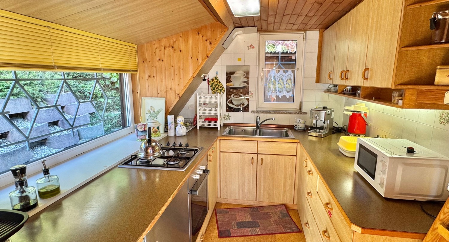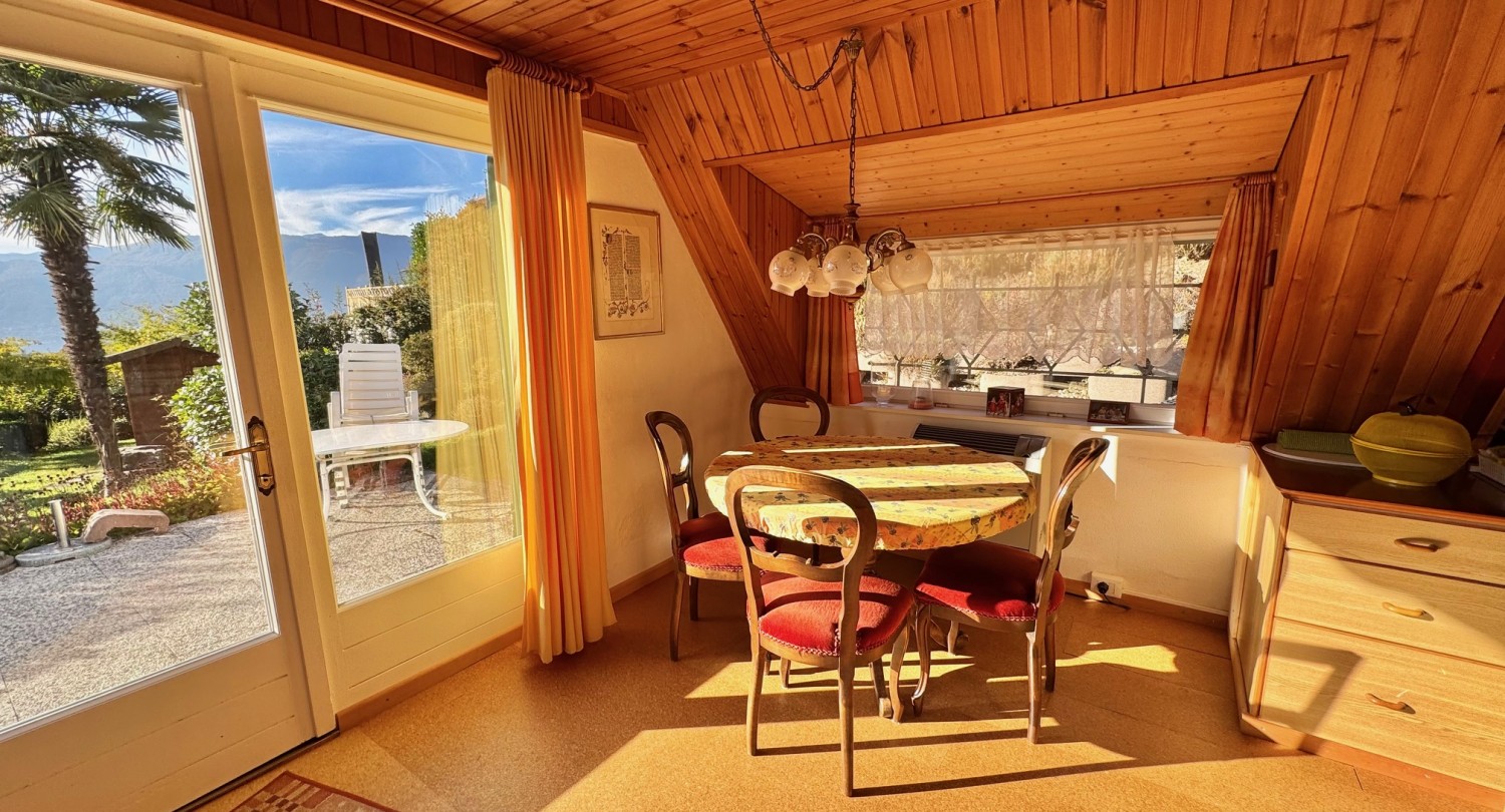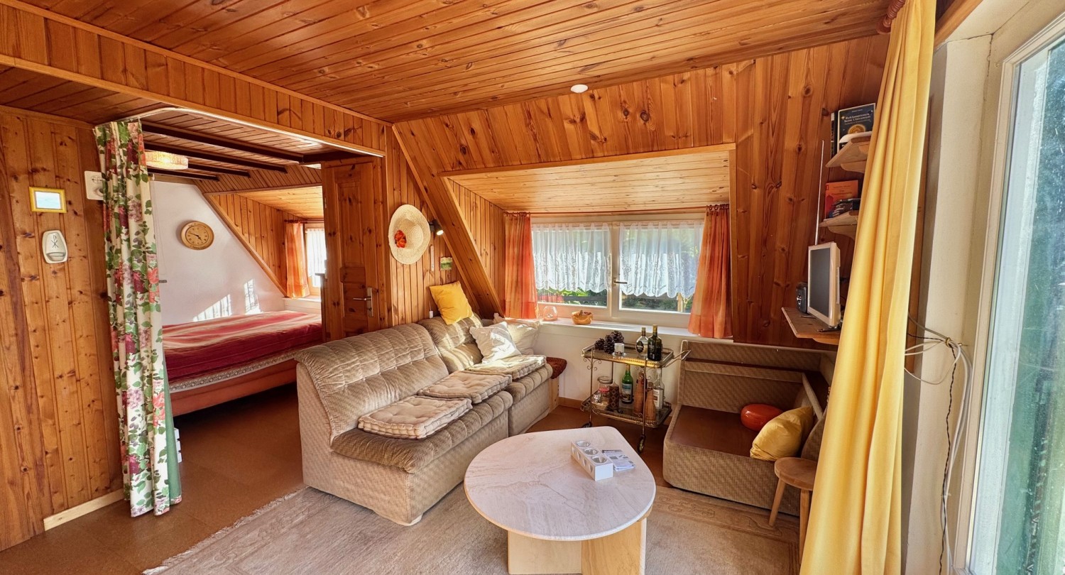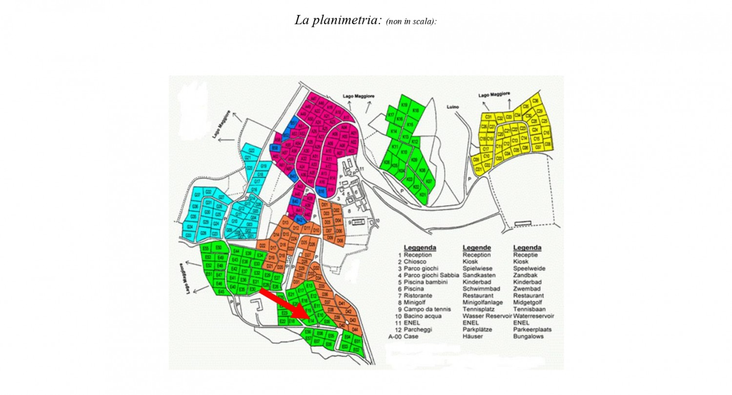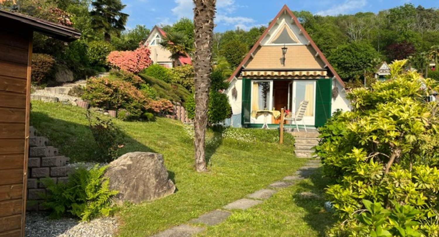 In the very well-maintained holiday complex "Villaggio Olandese," located about 3.5 km south of Luino, in the municipality of Brezzo di Bedero and surrounded by beautiful woodland, this two-level holiday home features a terrace and garden. The complex offers a large swimming pool with a children's pool, table tennis, mini golf, a tennis court, as well as a reception and a restaurant. The house has a total living area of approx. 80 sqm and is divided as follows: Ground floor: bright living/dining area with open kitchen, open bedroom and a bathroom. Upper floor: two bedrooms. The plot has a size of approx. 440 sqm.