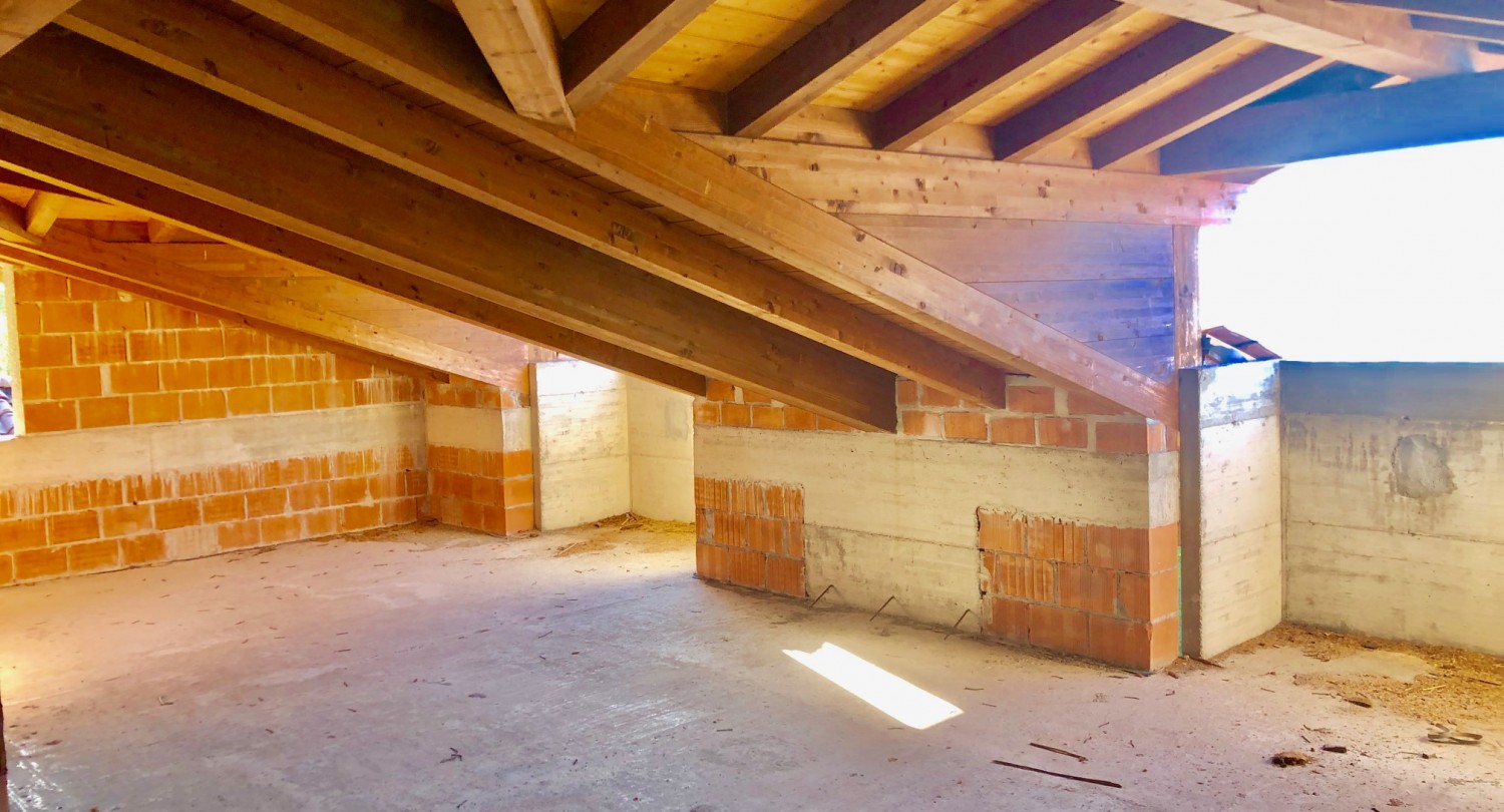 Villa in Castelveccana. This beautiful villa is located in a quiet (in a dead end) and sunny location in the municipality of Castelveccana, district Caldè. The total living area of approx. 290 sqm is divided as follows: Ground floor: large and bright living / dining area with open kitchen, exit to the large covered terrace and a bathroom. First floor: master bedroom with dressing room, en-suite bathroom and terrace, 2 more large bedrooms - both with access to a terrace and 2 more bathrooms. Attic: large attic room and another bathroom. The plot has a size of approx. 2,390 sqm- a pool and a garage can be built.