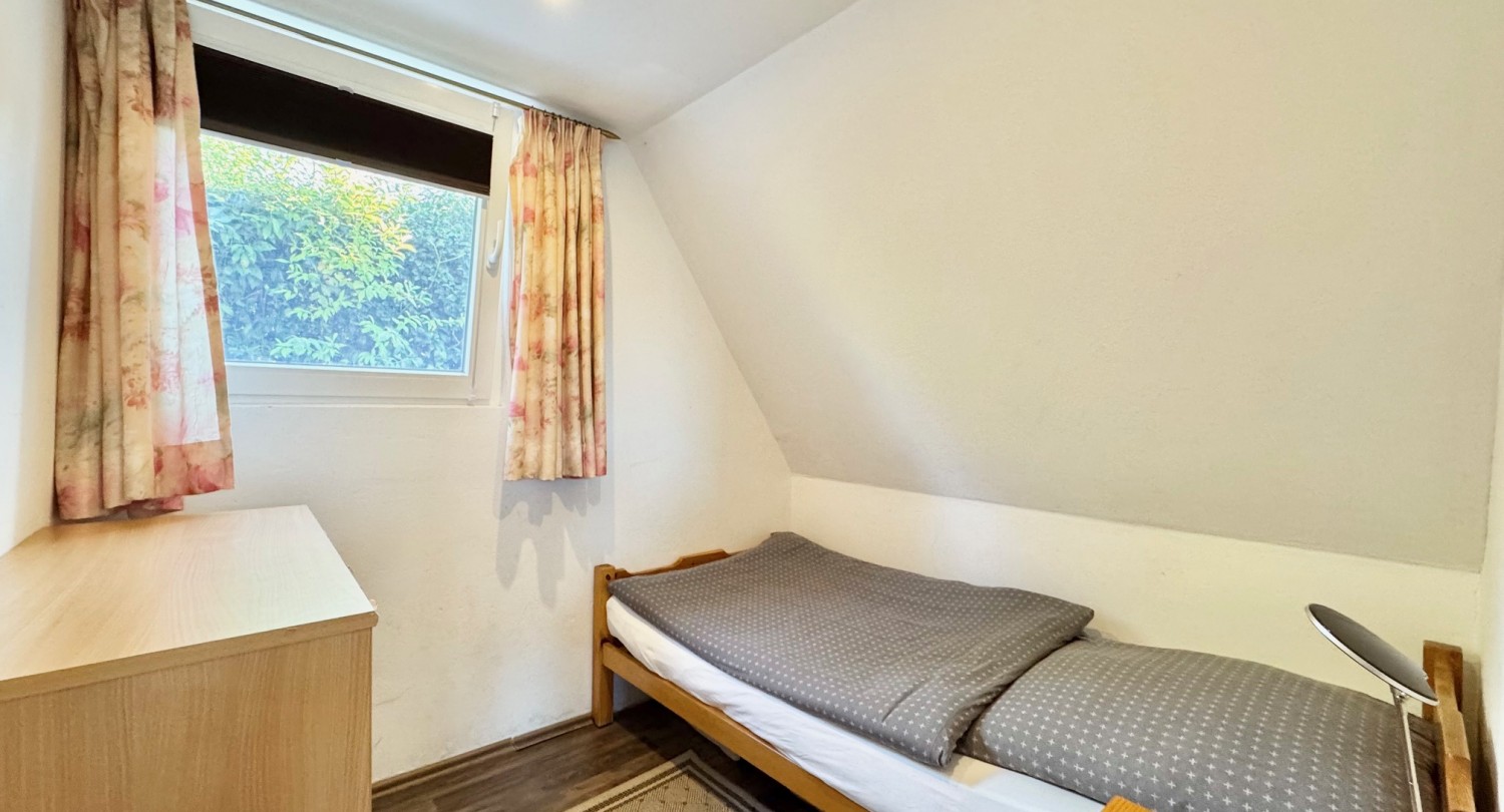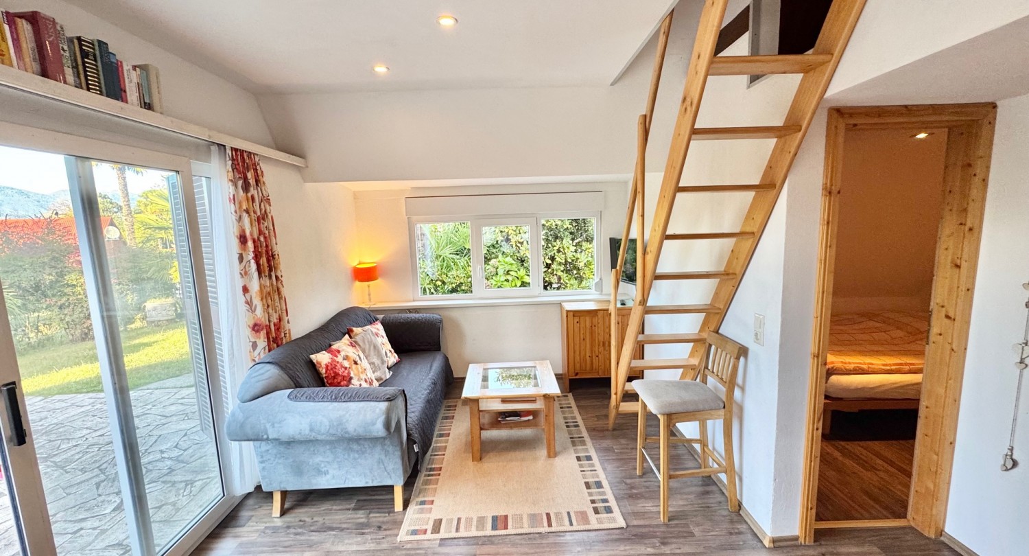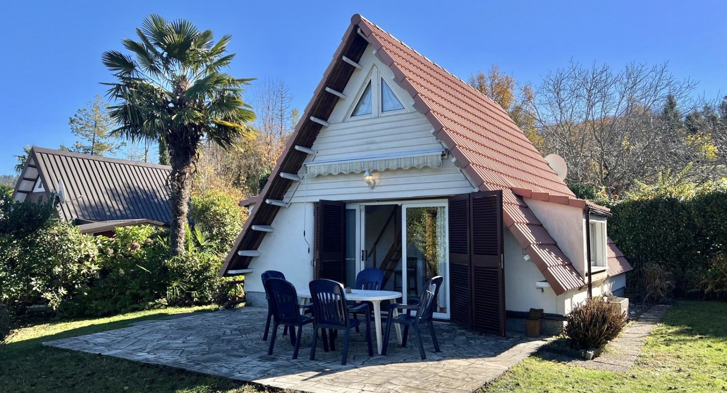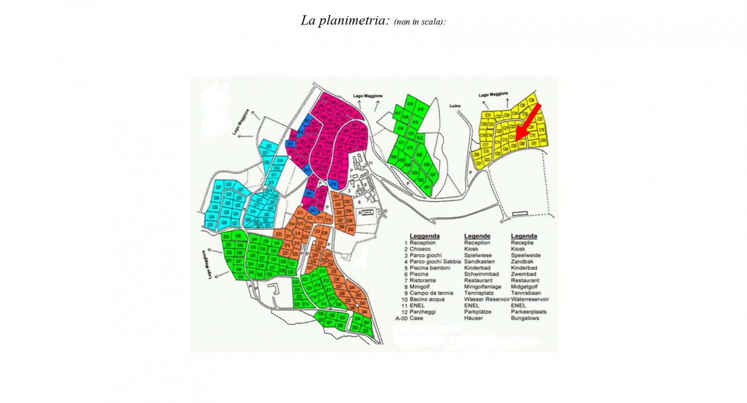 Nel complesso turistico molto ben curato "Villaggio Olandese", situato a circa 3,5 km a sud di Luino, nel comune di Brezzo di Bedero e immerso in un bel contesto boschivo, si trova questa casetta su due livelli con terrazza e giardino. La casa è accessibile senza gradini. Il complesso dispone di una grande piscina con area bambini, ping pong, minigolf, campo da tennis, nonché reception e ristorante. La casa ha una superficie totale di circa 80 mq ed è così composta:Piano terra: luminoso soggiorno/pranzo con cucina a vista, due camere da letto e un bagno.