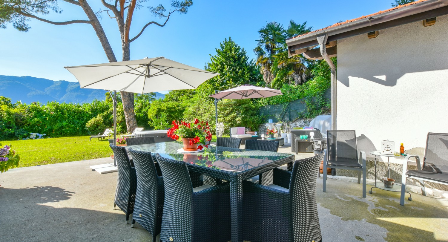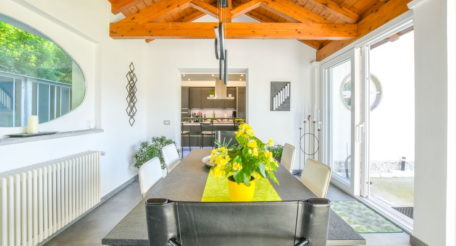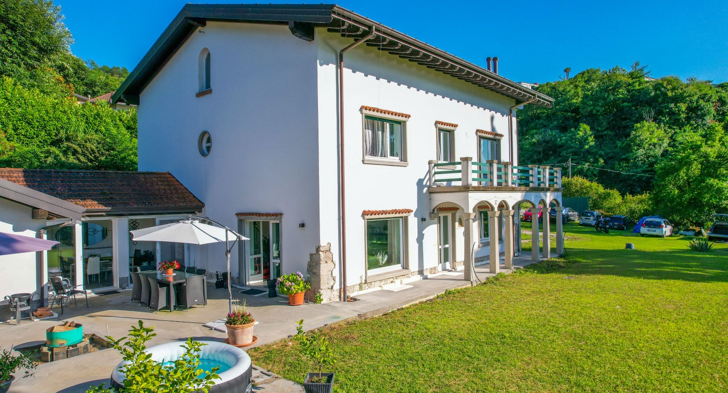 Questa splendida villa si trova nel comune di Brezzo di Bedero, a circa 4 km a sud di Luino, in una posizione soleggiata e a pochi passi dal lago. Costruita negli anni '70, la proprietà è stata oggetto di un'ampia ristrutturazione nel 2016 e nel 2022 e offre una superficie complessiva di circa 450 mq. La disposizione degli spazi è la seguente: Piano terra: ampio soggiorno con accesso diretto al giardino, cucina con isola, veranda adibita a sala da pranzo con uscita sull'area esterna attrezzata con zona relax e barbecue. Sullo stesso livello si trovano inoltre uno studio, una camera da letto, un bagno con doccia e una taverna. Primo piano: tre camere matrimoniali, di cui una con spaziosa cabina armadio ricavata da una quarta camera. Completano il piano due bagni e un grande balcone panoramico con vista lago che si sviluppa su due lati della casa. Piano mansardato: luminoso open space con pavimento in legno, ideale come locale hobby o ulteriore camera da letto. Piano interrato: lavanderia e cantina; i locali tecnici sono comodamente accessibili dall'esterno. Accanto alla villa si trova una dependance di circa 70 mq, suddivisa in due unità indipendenti: al piano terra un monolocale con angolo cottura e bagno, al primo piano un bilocale composto da soggiorno con angolo cottura, camera da letto e bagno. Il curato giardino pianeggiante di circa 2.700 mq garantisce ampia privacy e offre una splendida vista aperta sul Lago Maggiore.DETTAGLI