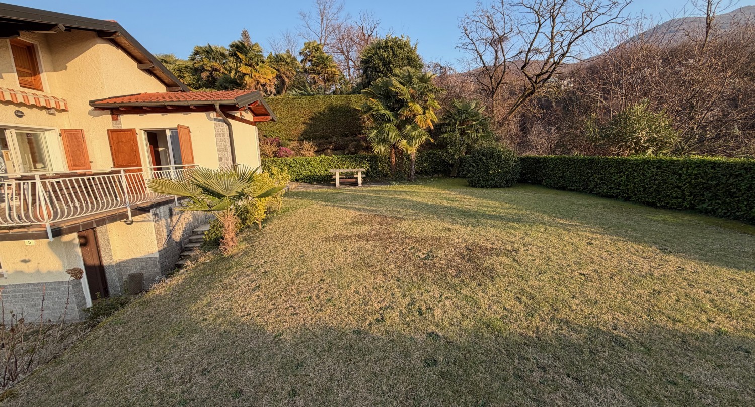 Questa casa bifamiliare, molto ben curata, si trova in una posizione tranquilla e soleggiata nel comune di Brezzo di Bedero, alla fine di una strada senza uscita. La spiaggia è raggiungibile a piedi in circa 5 minuti. La casa offre una superficie totale di circa 110 mq ed è così composta: ingresso, luminoso e accogliente soggiorno con accesso alla terrazza a forma di "L", cucina moderna a vista con zona pranzo, due camere da letto (una delle quali con accesso diretto alla terrazza) e un bagno finestrato. Al piano seminterrato si trovano due locali hobby, una lavanderia e un secondo bagno. Il giardino pianeggiante ha una superficie di circa 580 mq. La casa è stata ristrutturata nel 2014 e dispone, tra le altre cose, di allacciamento alla rete fognaria, nuova caldaia a gas, tetto isolato nuovo e una nuova stufa a legna. Completano la proprietà un garage privato e diversi posti auto (con una Wallbox per auto elettriche) all'interno del terreno recintato.DETTAGLI