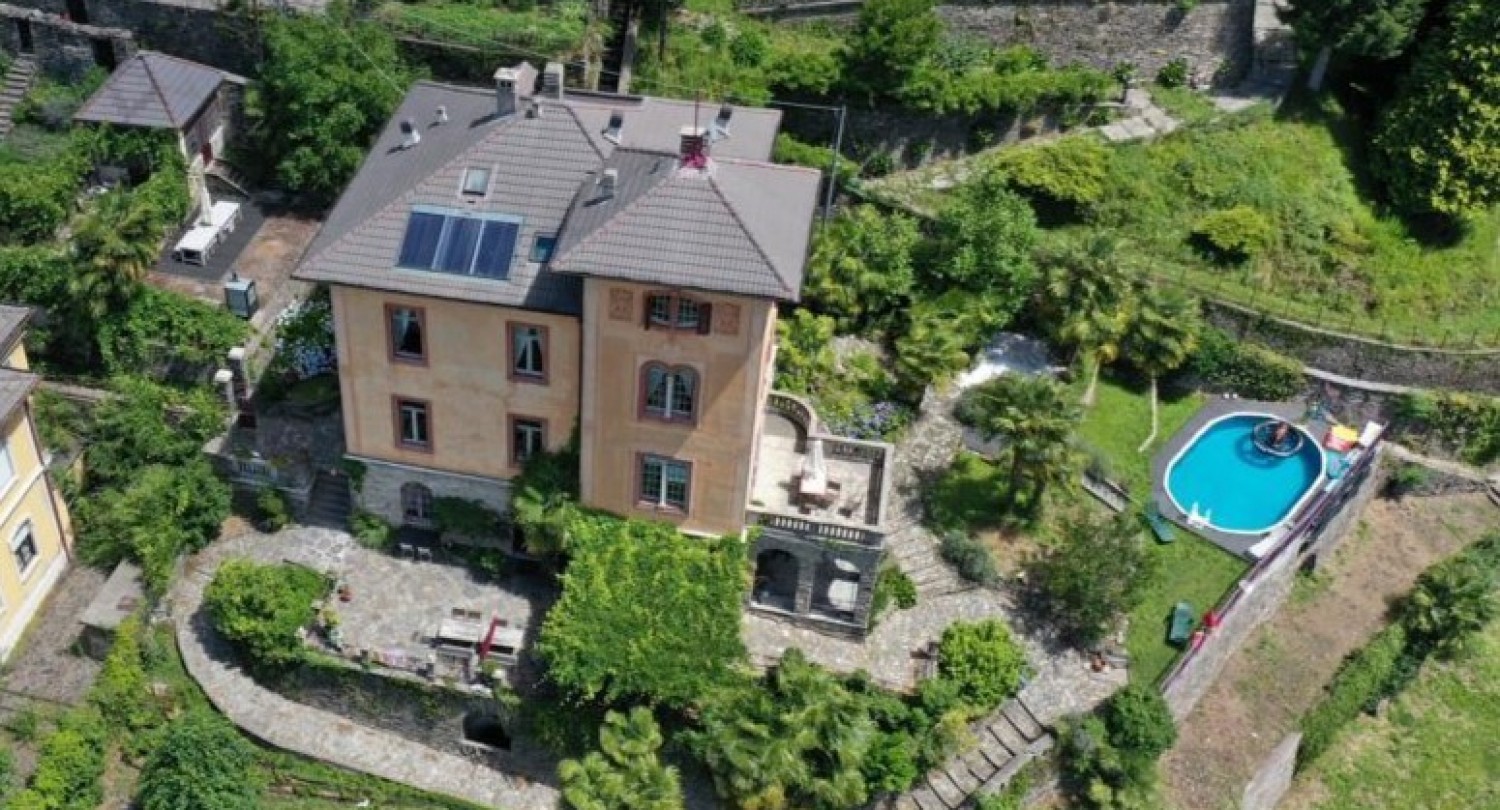 Questa splendida villa si trova nel caratteristico e suggestivo borgo montano di Curiglia, a circa 25 minuti da Luino. La proprietà dispone di una superficie totale di circa 588 mq ed è suddivisa come segue: Piano seminterrato: zona giorno, cucina, bagno, dispensa, ripostiglio, cantina e locale caldaia. Piano terra: camera da letto con cucina e bagno, sala colazioni, biblioteca. Primo piano: camera da letto con cucina e bagno, altre tre camere da letto e tre bagni. Secondo piano: due camere da letto, due bagni e tre locali ripostigli. Il bellissimo terreno piantumato e ben curato, con diverse terrazze e piscina, ha una superficie di circa 1.175 mq. Il B&B ha attualmente un reddito di circa 33.000 € all'anno, con attività dal 1° aprile al 30 ottobre.DETTAGLI