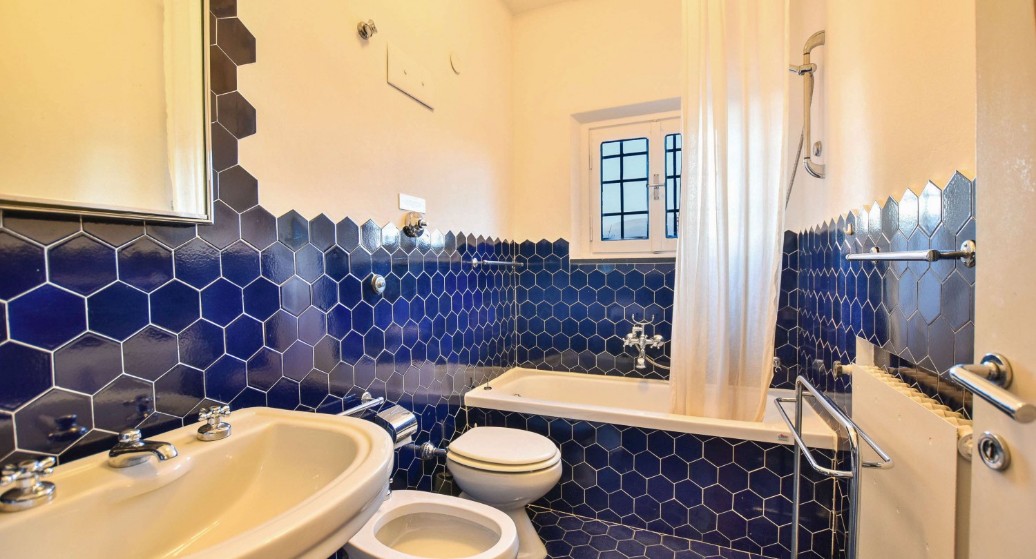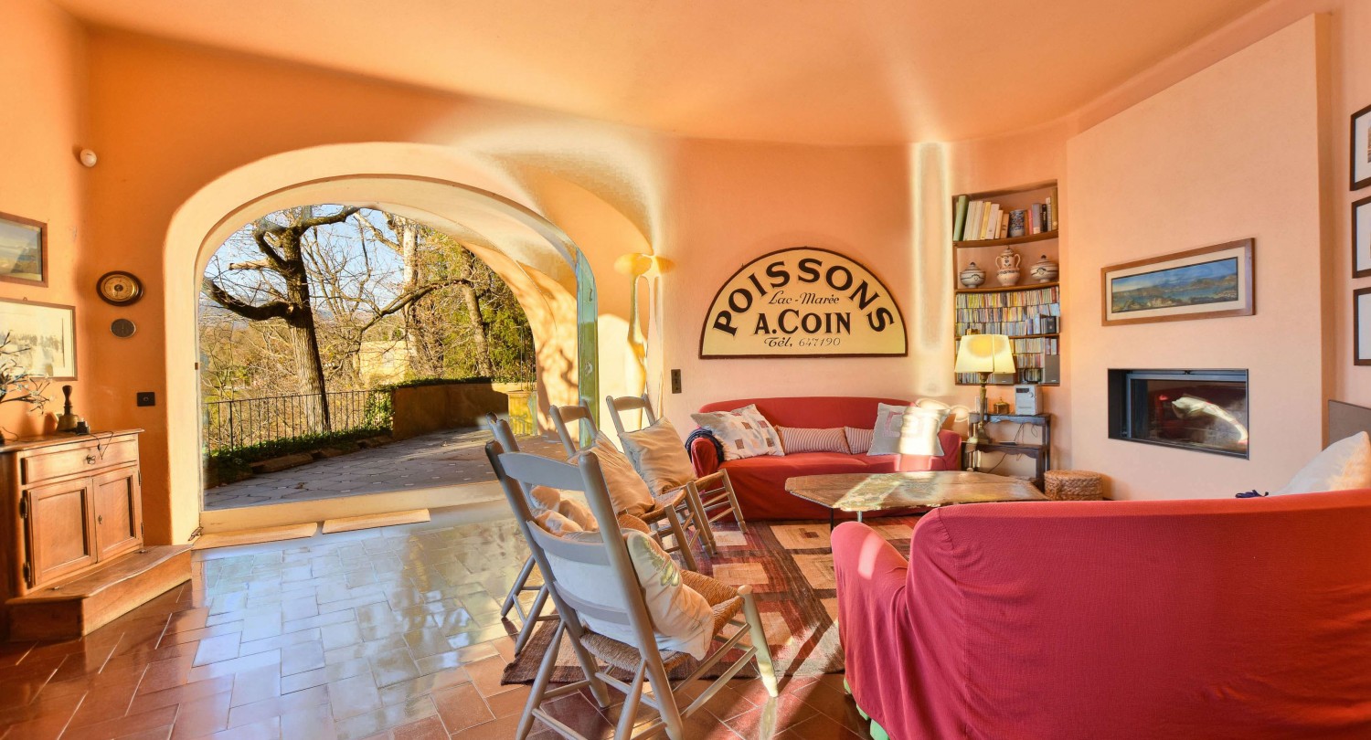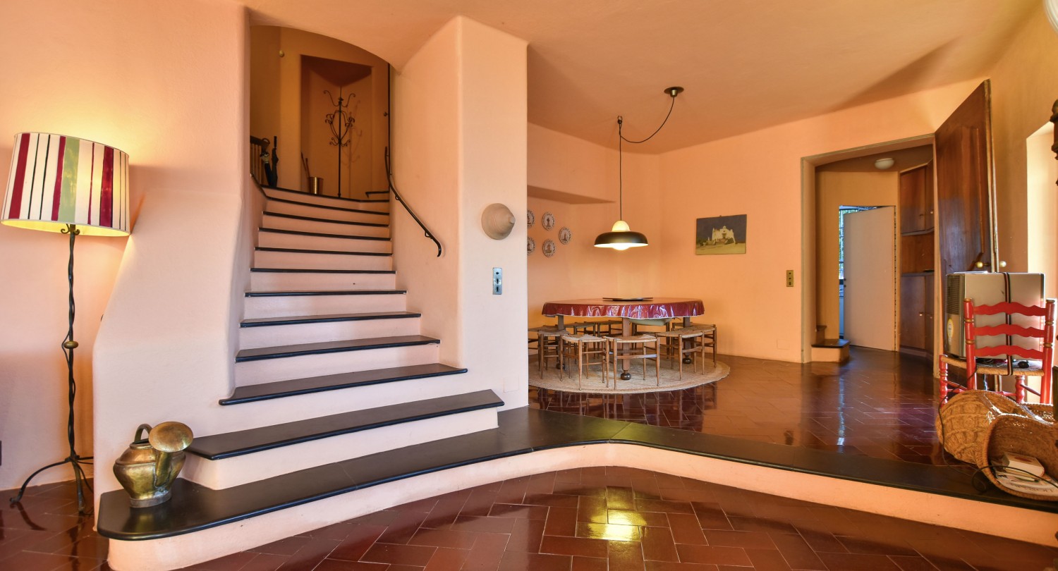 La villa è stata costruita nel 1957 su progetto dell'architetto Luigi Caccia Dominioni, uno dei più importanti architetti italiani del XX secolo. È stata realizzata direttamente sulla roccia, caratteristica che ha determinato la particolare distribuzione degli spazi interni, articolati su più livelli.La proprietà dispone di una superficie totale di circa 370 mq, con 6 camere da letto, 5 bagni e un terreno di circa 2.000 mq.