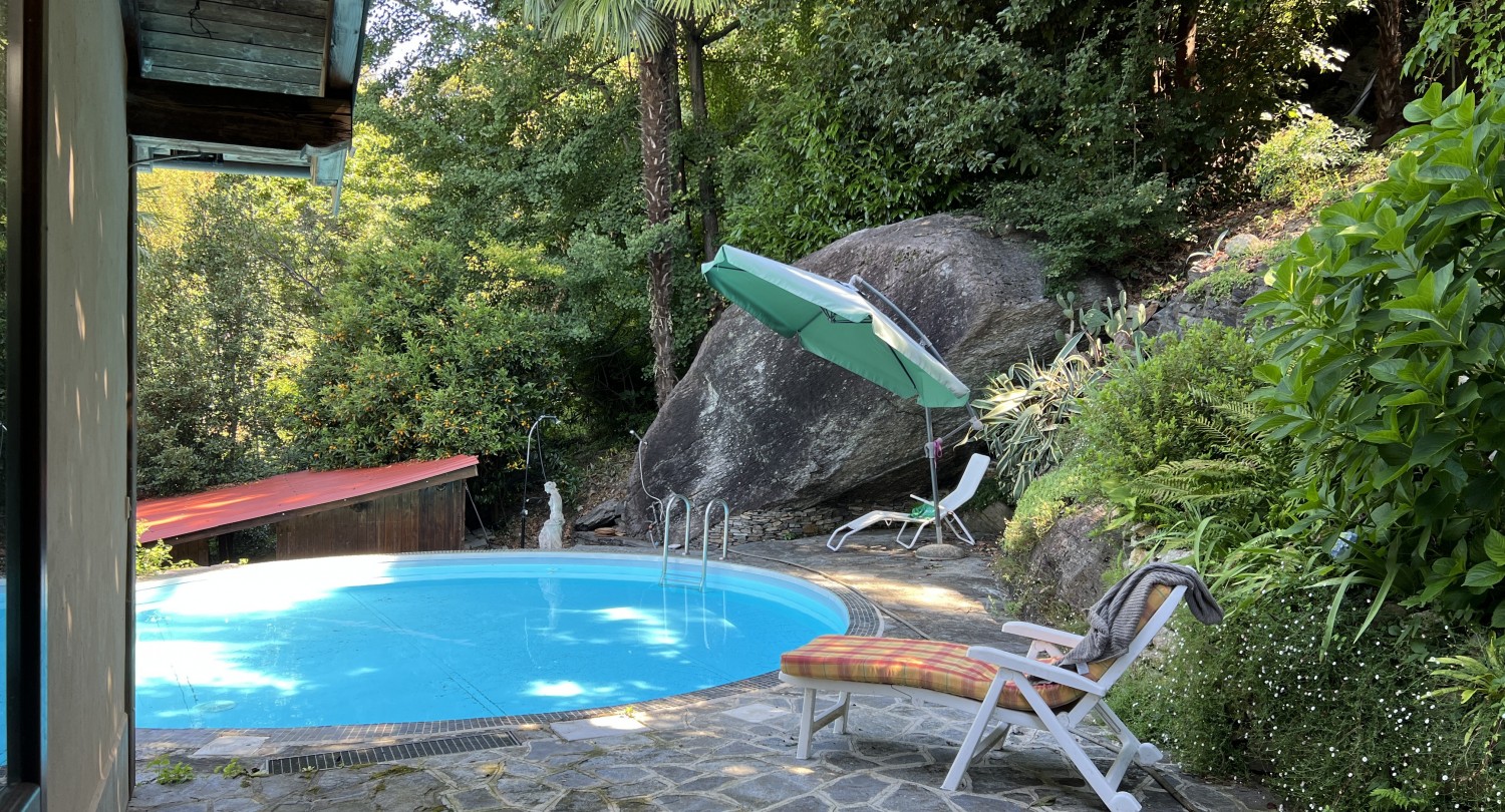 Tre case singole con bellissimo giardino, vista lago e piscina, in una posizione tranquilla