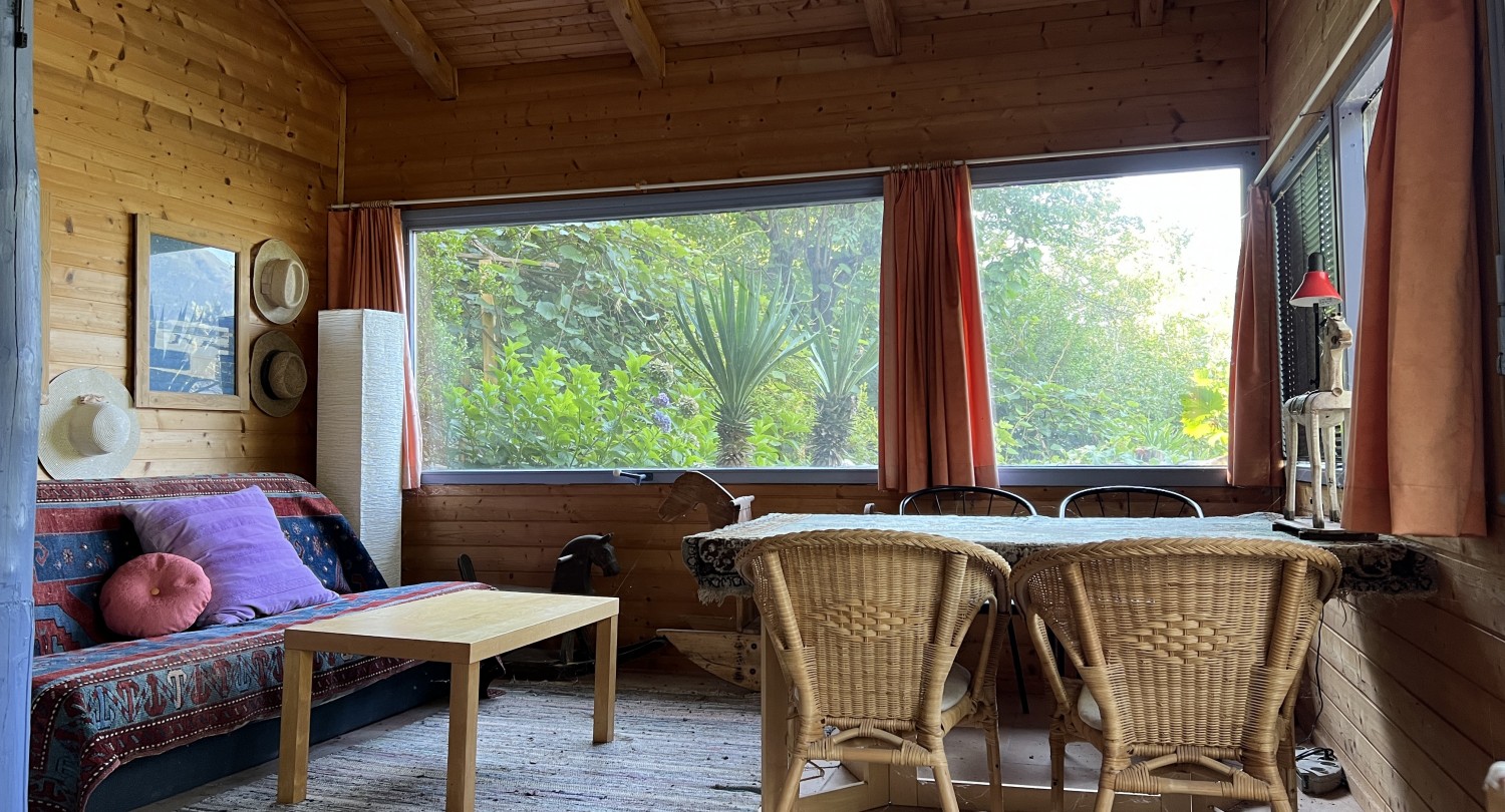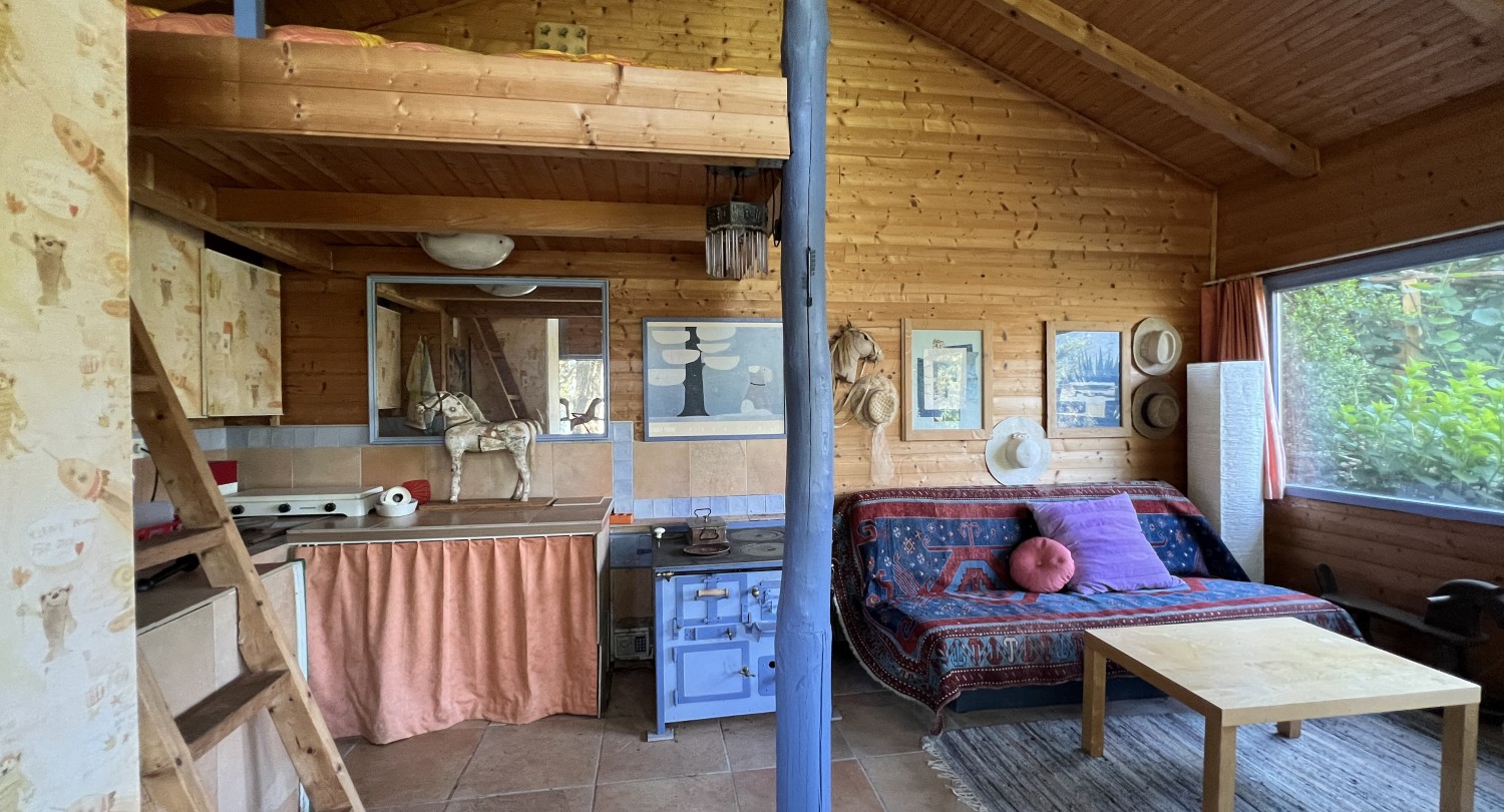 Lo chalet ha una superficie totale di circa 35 mq ed è così suddiviso: piano terra: zona giorno con cucina a vista, bagno e locale caldaia. Soppalco: camera da letto.