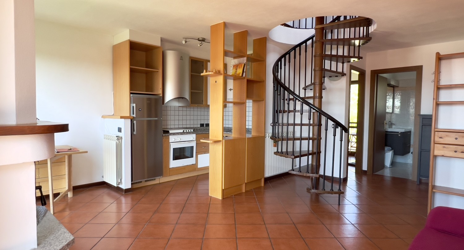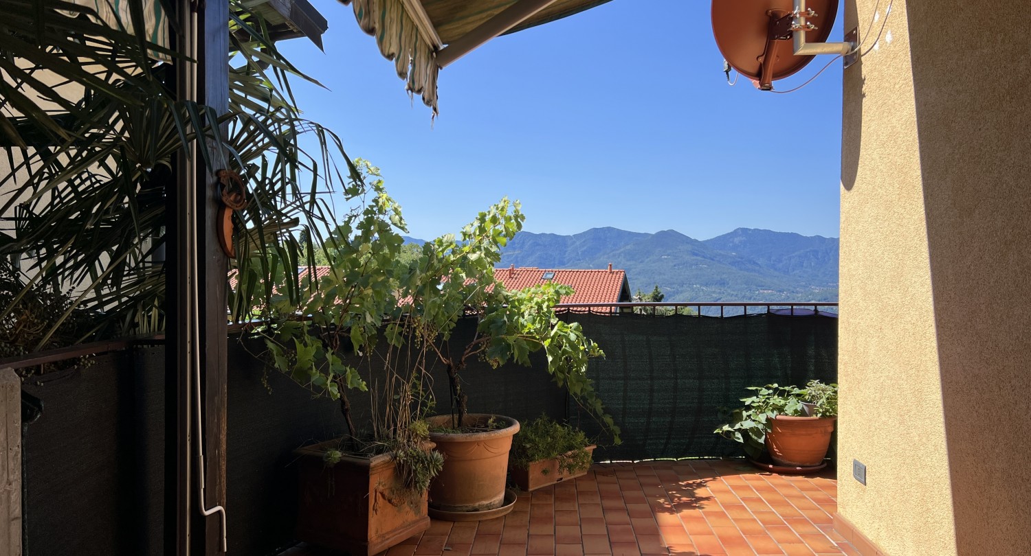 Wohnung in Agra. Diese schöne Wohnung befindet sich in der „Residenza Paradiso", einer Anlage mit 32 Einheiten, nahe dem Ortskern von Agra, ca. 15 Minuten oberhalb des Lago Maggiore in sehr ruhiger Lage. Im Ort befinden sich ein Restaurant, eine Pizzeria, ein Supermarkt und sehr schöne Wanderwege.Die Wohnung bietet eine Wohnnutzfläche von ca. 75 mq und ist wie folgt aufgeteilt: Wohnbereich mit offenem Kamin und Ausgang auf die große Terrasse, offene Küche, 2 Schlafzimmer und 2 Bäder. Ein Garagenstellplatz rundet dieses Angebot ab.
